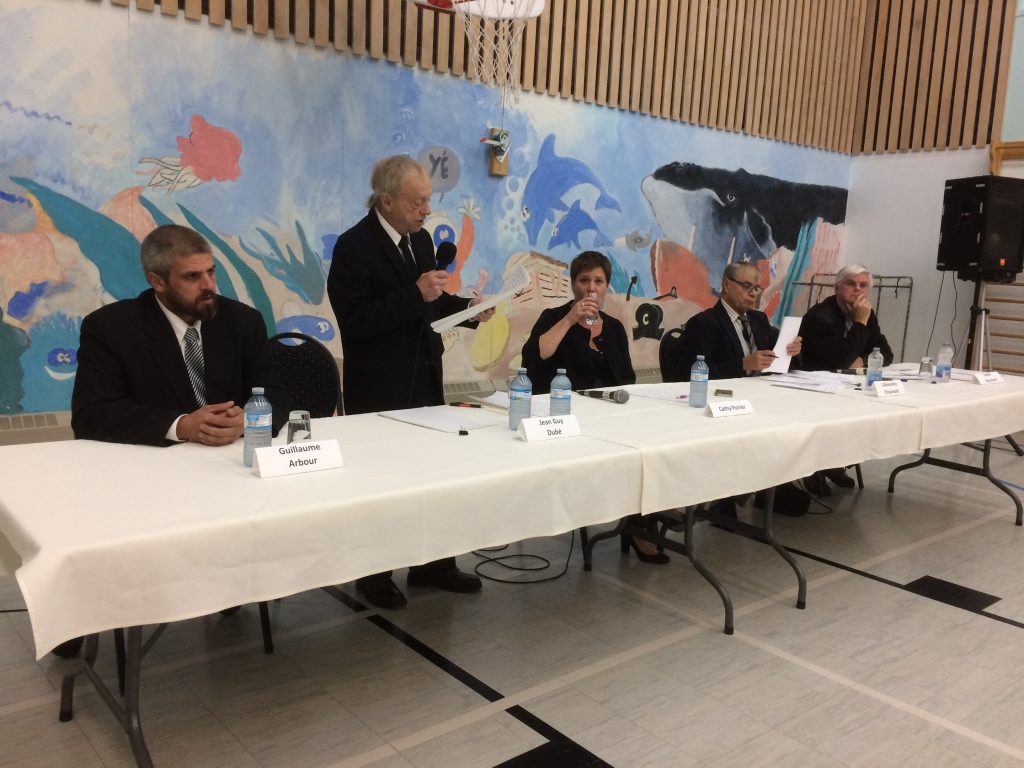Guillaume Arbour, Owen Bouchard, Alexandre Chouinard, Jean-Guy Dubé et Cathy Poirier ont d’abord pris la parole pour se présenter, devant la salle pleine à craquer d’environ 130 personnes.