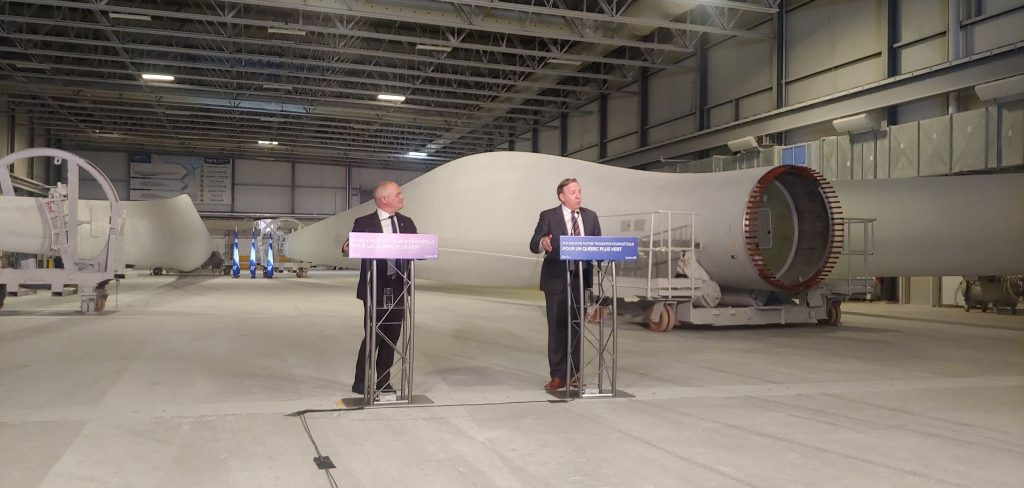 Il s’agit donc du plus important appel d’offres en énergie verte de l’histoire d’Hydro-Québec, lance avec fierté François Legault à l’usine de pâles d’éoliennes LM Wind Power en compagnie du ministre des Ressources naturelles Jonatan Julien.