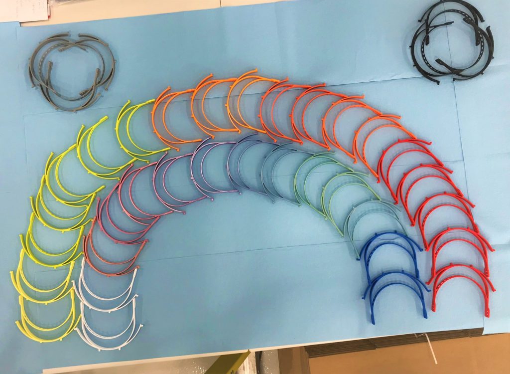 Plus de 500 imprimantes 3D fonctionnent actuellement. Des prototypes masques N95 et de ventilateurs ont commencé à voir le jour, mais le groupe se concentre surtout sur des visières :
