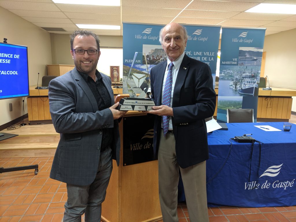 Les gaspésiens et madelinots reçoivent le Trophée Educ’Alcool 2019 à l’Hôtel de Ville de Gaspé. Ils sont les consommateurs d’alcool les plus responsables et modérés en province, selon le plus récent sondage CROP.