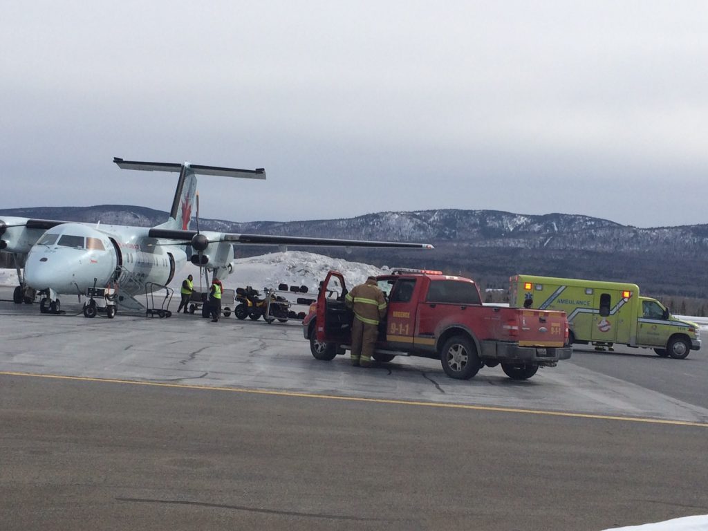 L’événement est survenu vers 14 h alors que l’appareil en provenance des Îles-de-la-Madeleine était en approche pour son atterrissage. Selon le directeur de l’aéroport, les pilotes ont communiqué avec la station de contrôle à Mont-Joli pour signaler une complication avec le train d’atterrissage.
