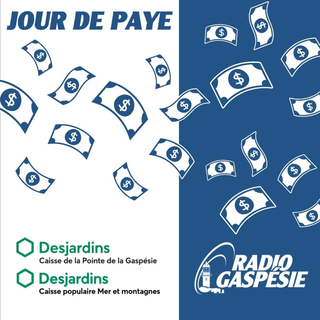 Radio Gaspésie est fière de lancer le concours Jour de paye, en collaboration avec la Caisses Desjardins de la Pointe de la Gaspésie et la Caisse Desjardins Mer et Montagne.