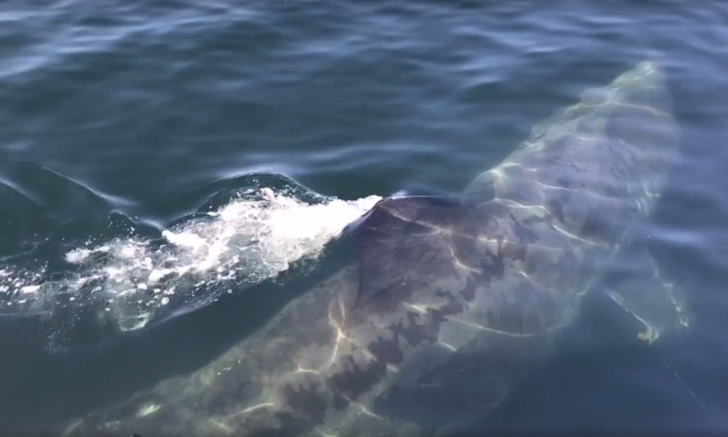 Le requin-pèlerin vu mercredi à Cloridorme. Photo tirée d’une vidéo de Michael Samson.