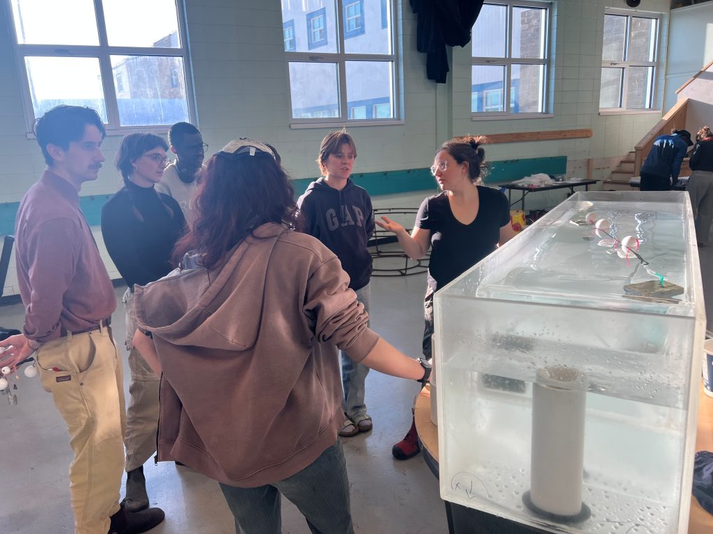 Le bassin comprend une pompe qui permettra de reproduire des vagues et des courants marins de diverses intensités. Il s’agit d’une sorte d’aquarium en acrylique de cinq pieds de long, par seize pouces de largeur et de hauteur.