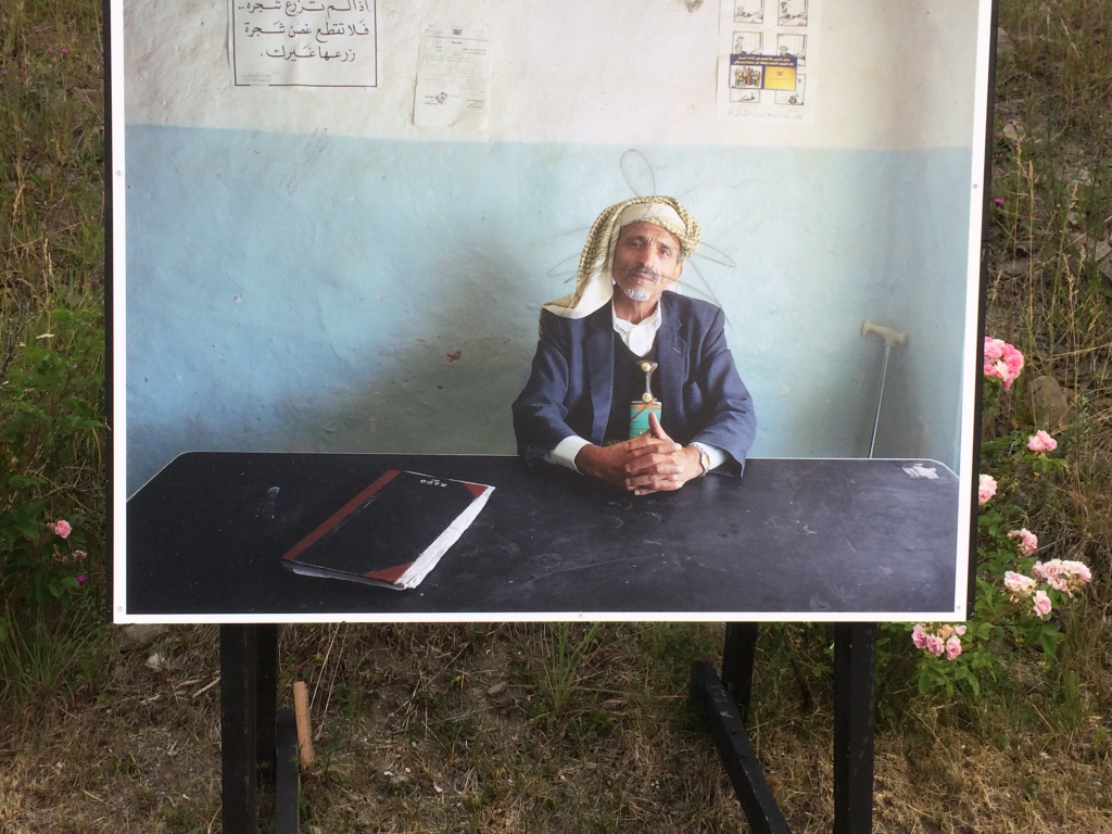 Sur la promenade entre le pont de Gaspé et le Musée de la Gaspésie, Jan Banning présente des fonctionnaires de 8 pays différents. Une photo présente un homme avec un turban et une autre, une femme portant le voile intégral. Leur visage a été gribouillé au marqueur noir.