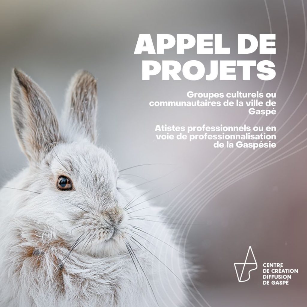 Deux appels de projets sont lancés aujourd’hui par le Centre de Création Diffusion de Gaspé (CCDG). Le premier s’adresse aux groupes culturels et/ou communautaires de la ville de Gaspé et le second s’adresse aux artistes professionnels ou en voie de professionnalisation de la Gaspésie.