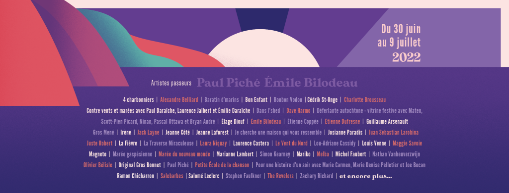 L’équipe du Festival en chanson de Petite-Vallée dévoile aujourd’hui la programmation complète de la 39e édition de l’événement. Chose certaine, il y en aura pour tous les goûts avec la soixantaine d’artistes qui se succéderont sur les différentes scènes du Festival qui aura lieu du 30 juin au 9 juillet à Petite-Vallée et dans les villages environnants.