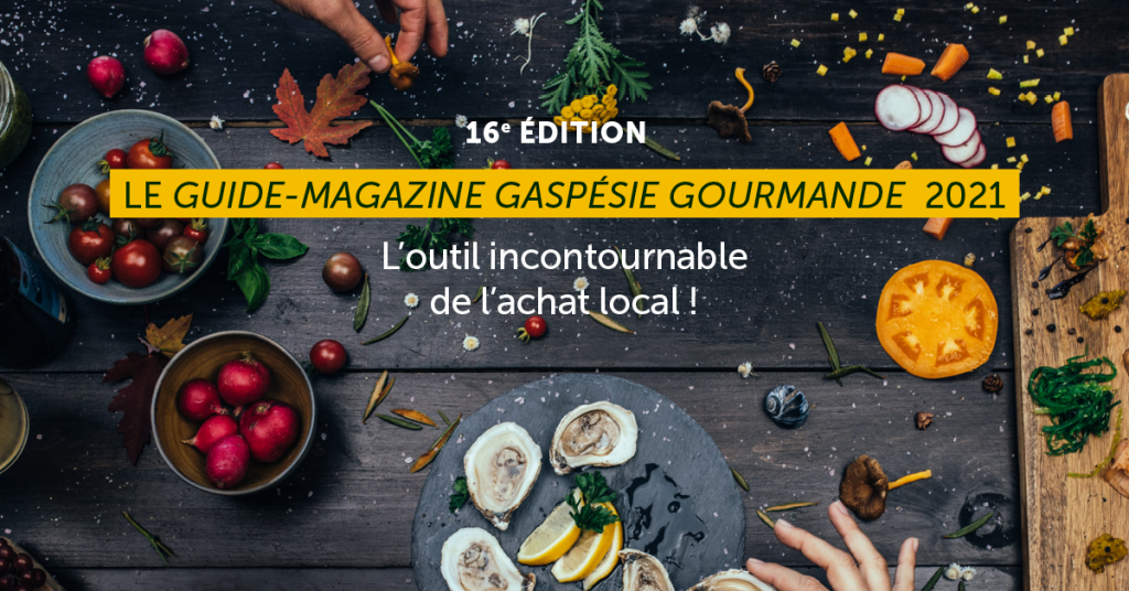La 16e édition du Guide-Magazine Gaspésie Gourmande est disponible en version papier et en ligne. Gaspésie Gourmande, qui célèbre cette année son 30e anniversaire, est heureuse de dévoiler cet outil incontournable facilitant l’achat local dans la région.