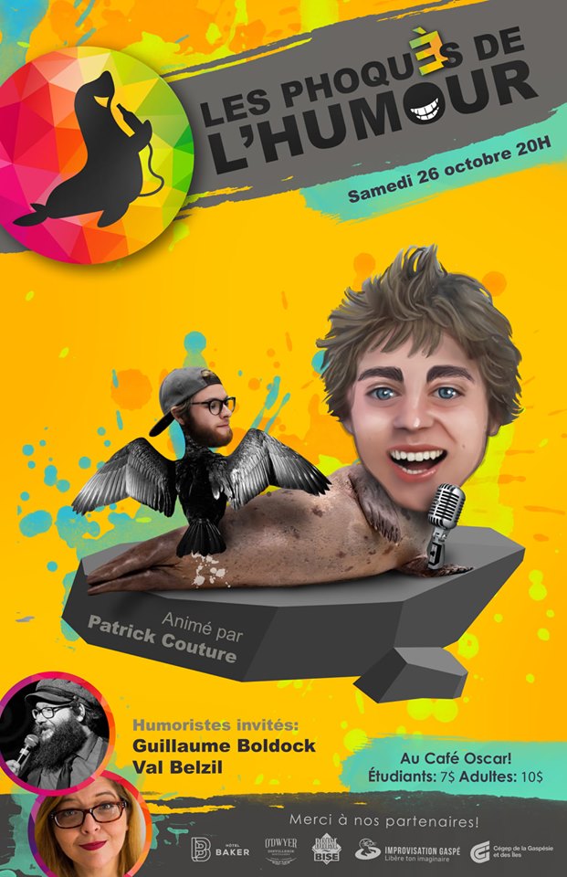 Une présentation des Phoqués de l’humour, en association avec le Cégep de la Gaspésie et des Îles, ainsi qu’Improvisation Gaspé.