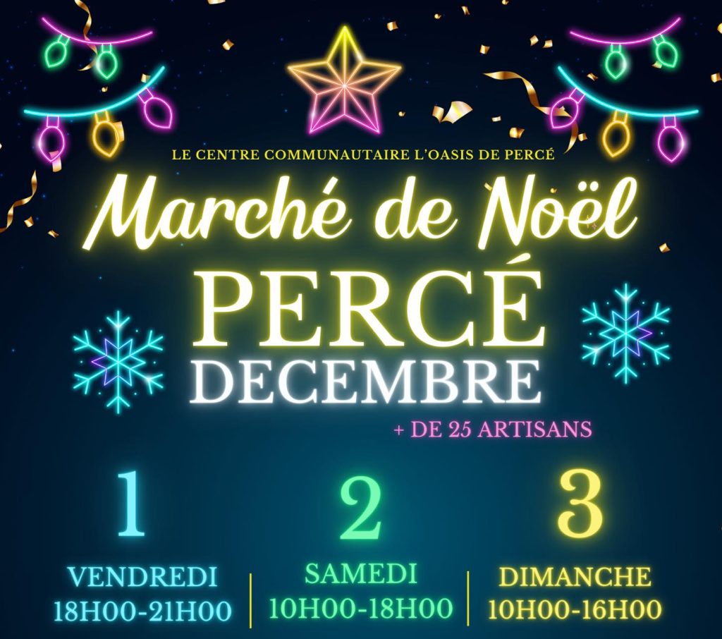 La 3e édition du Marché de Noël de Percé se tiendra du 1er au 3 décembre au Centre communautaire L’Oasis. Plus de 25 artisans seront présents, des films de Noël seront projetés, des tours de calèches seront offerts et bien plus encore.