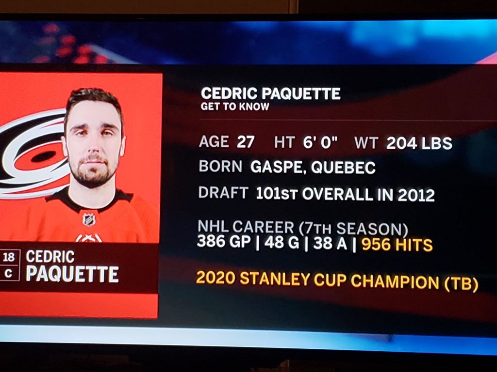 L’attaquant gaspésien de la Ligue nationale de hockey, Cédric Paquette de Gaspé, aligne la formation des Hurricanes de la Caroline pour le reste de son contrat.