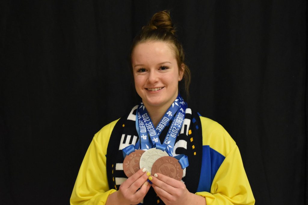 Aux médailles remportées en boxe (Jason Jalbert Or), karaté (Luna Troestler-Leon Argent et Évelyne Courtemanche Bronze), et patinage artistique (Logane Boulay Bronze), Louana Côté de Gaspé a réussi un triplé avec 1 d’argent et 2 de bronze en haltérophilie.