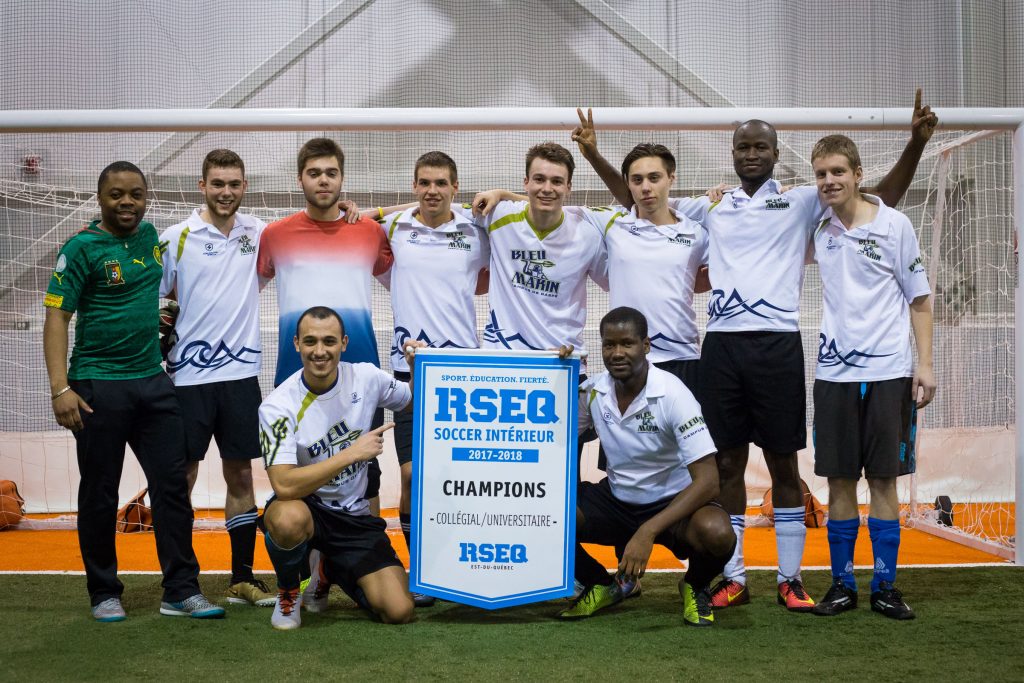 L’équipe masculine de soccer intérieur Le Bleu Marin du campus de Gaspé remporte une 1ère bannière à titre de championne de la Ligue collégiale universitaire de l’Est-du-Québec.